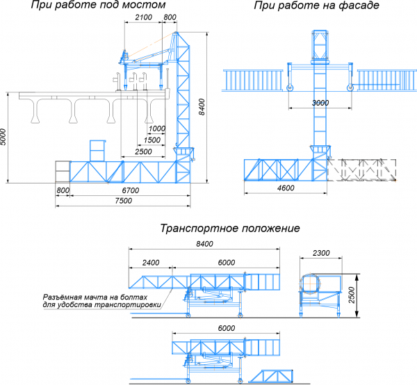 Облегченная латформа мостовая консольная ПГММ7-ППП предназначена для обслуживания нижних и фасадных поверхностей пролетных строений мостов и путепроводов при проведении строительно-монтажных работ с увеличенным просветом для высокого барьерного ограждения. Поставляется со складной или выдвижной платфрмой по желанию заказчика. Может использоваться для выполнения работ по обследованию мостов, а также для проведения специальных работ в процессе строительства. Простое управление площадкой обеспечивает быстрое и надежное разворачивание в рабочее положение в течение 10 минут ручным приводом. Перевозится к месту работы автомашиной грузоподъемностью не менее 3-х тонн.